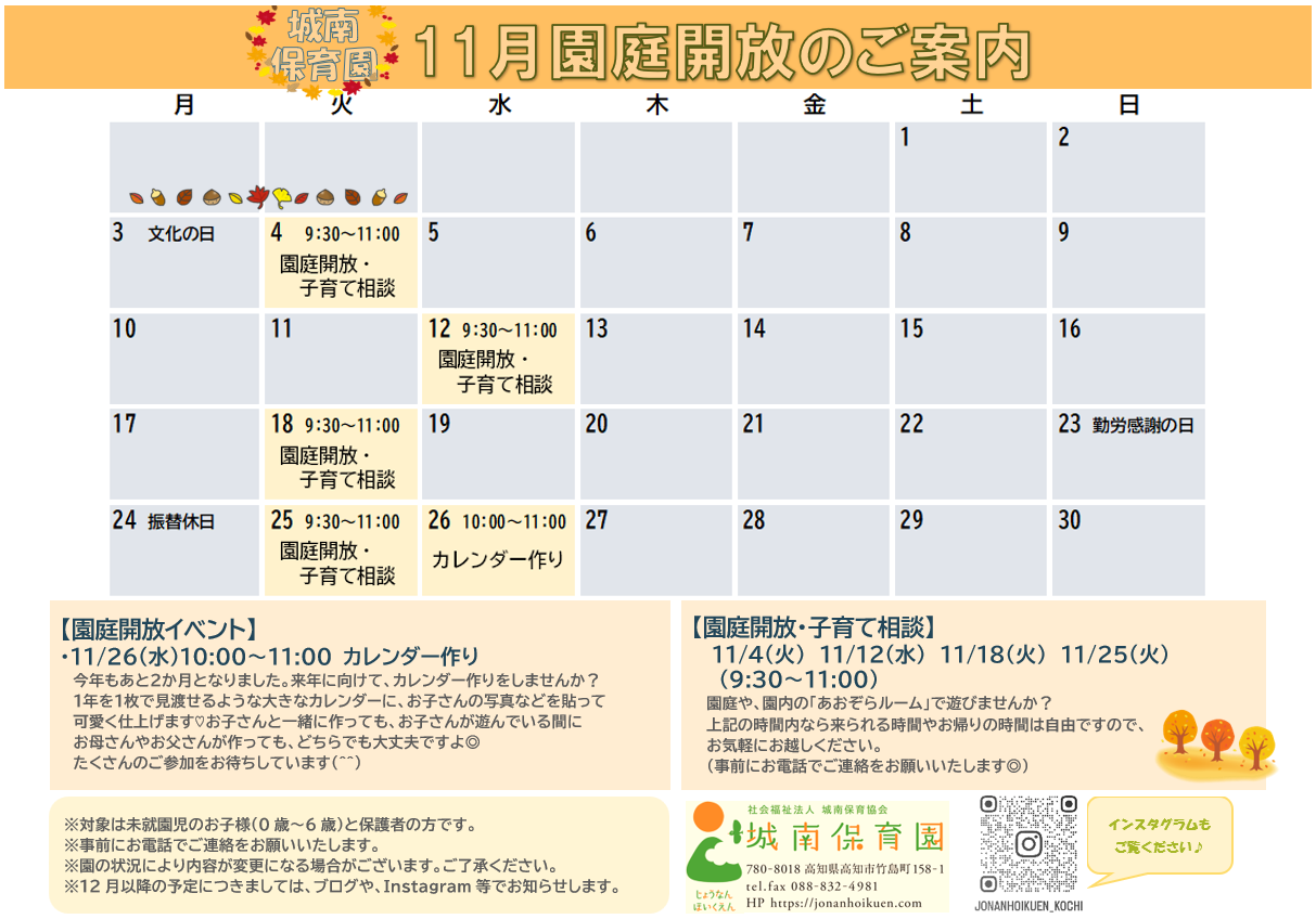 ※11月以降の予定につきましては、ブログや、Instagram等でお知らせします。