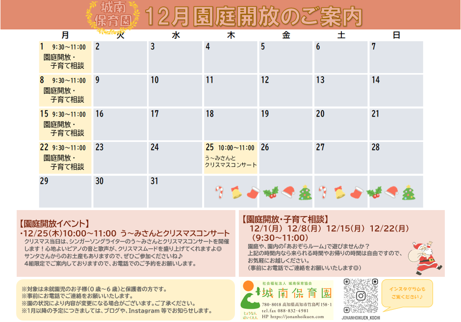 ※12月以降の予定につきましては、ブログや、Instagram等でお知らせします。