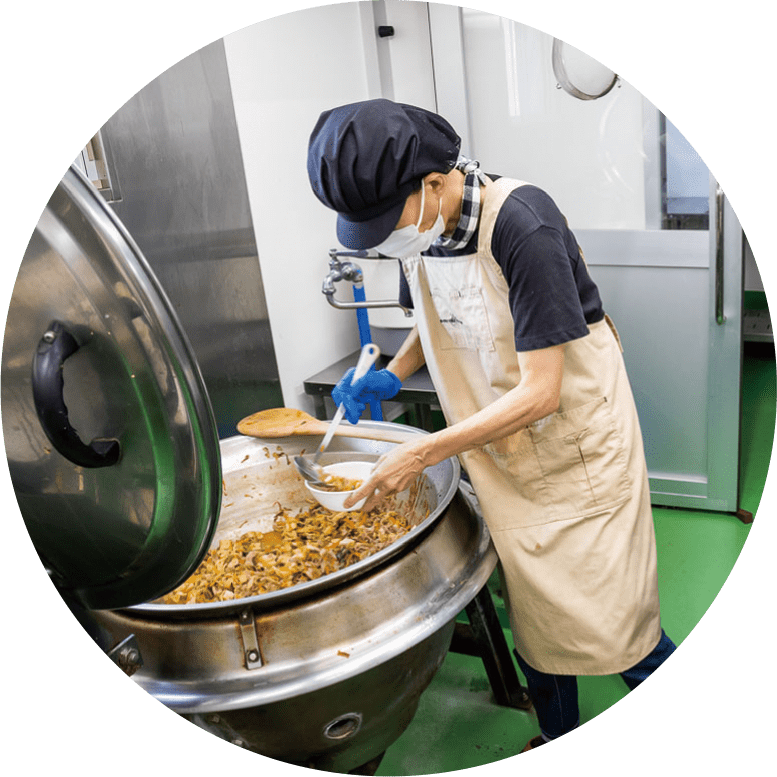 園内にある調理場で毎日手作りの給食を提供しています。